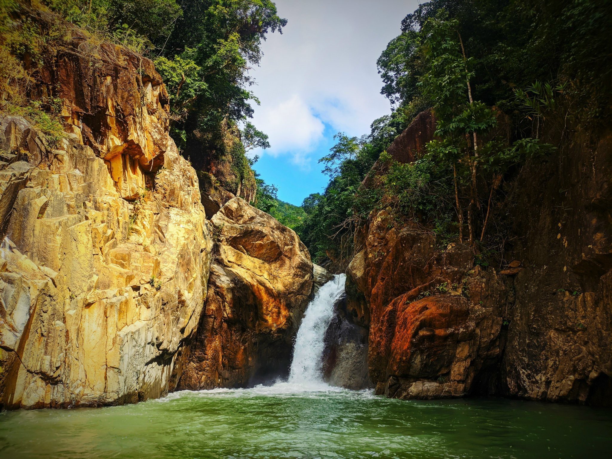 Chiêm ngưỡng thác nước: Thác có dòng nước trong vắt đổ xuống từ độ cao khoảng 20m qua các tầng đá, tạo nên hồ nước xanh mát bên dưới, rất lý tưởng để tắm suối.
