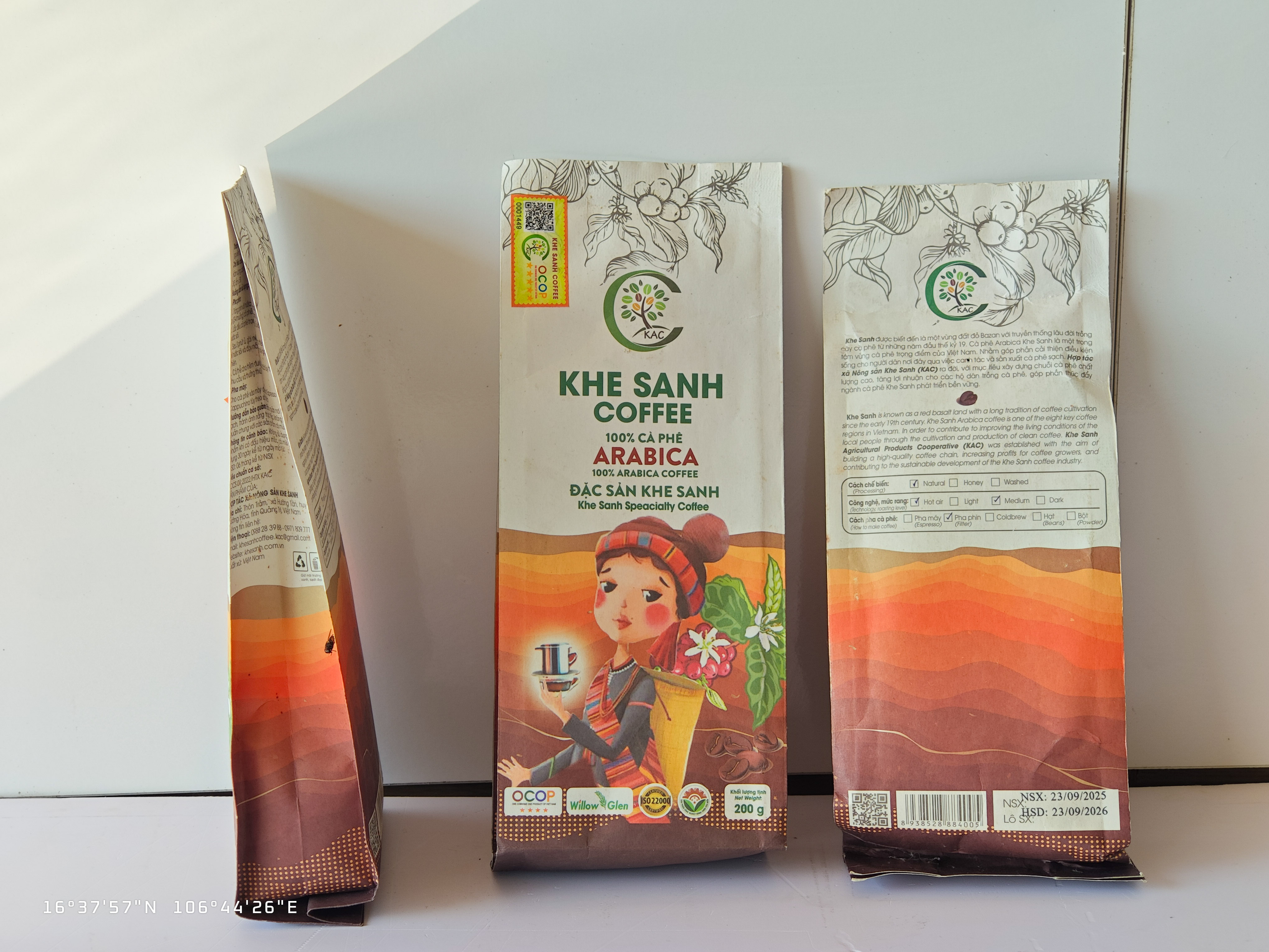 Khe Sanh Coffee - 100% Arabica là dòng cà phê đặc sản (Specialty Coffee) mang đậm hơi thở của vùng cao nguyên đất đỏ bazan. Được sản xuất bởi Hợp Tác Xã Nông Sản Khe Sanh (KAC), sản phẩm vinh dự đạt chứng nhận OCOP và tiêu chuẩn an toàn quốc tế ISO 22000. Dòng sản phẩm này được chế biến theo phương pháp tự nhiên (Natural), rang ở mức độ vừa (Medium) và xay sẵn tiện lợi (Bột), mang đến một ly cà phê phin nguyên bản với hương thơm nồng nàn, vị chua thanh nhẹ nhàng và hậu ngọt sâu lắng đặc trưng của giống loài Arabica hảo hạng.